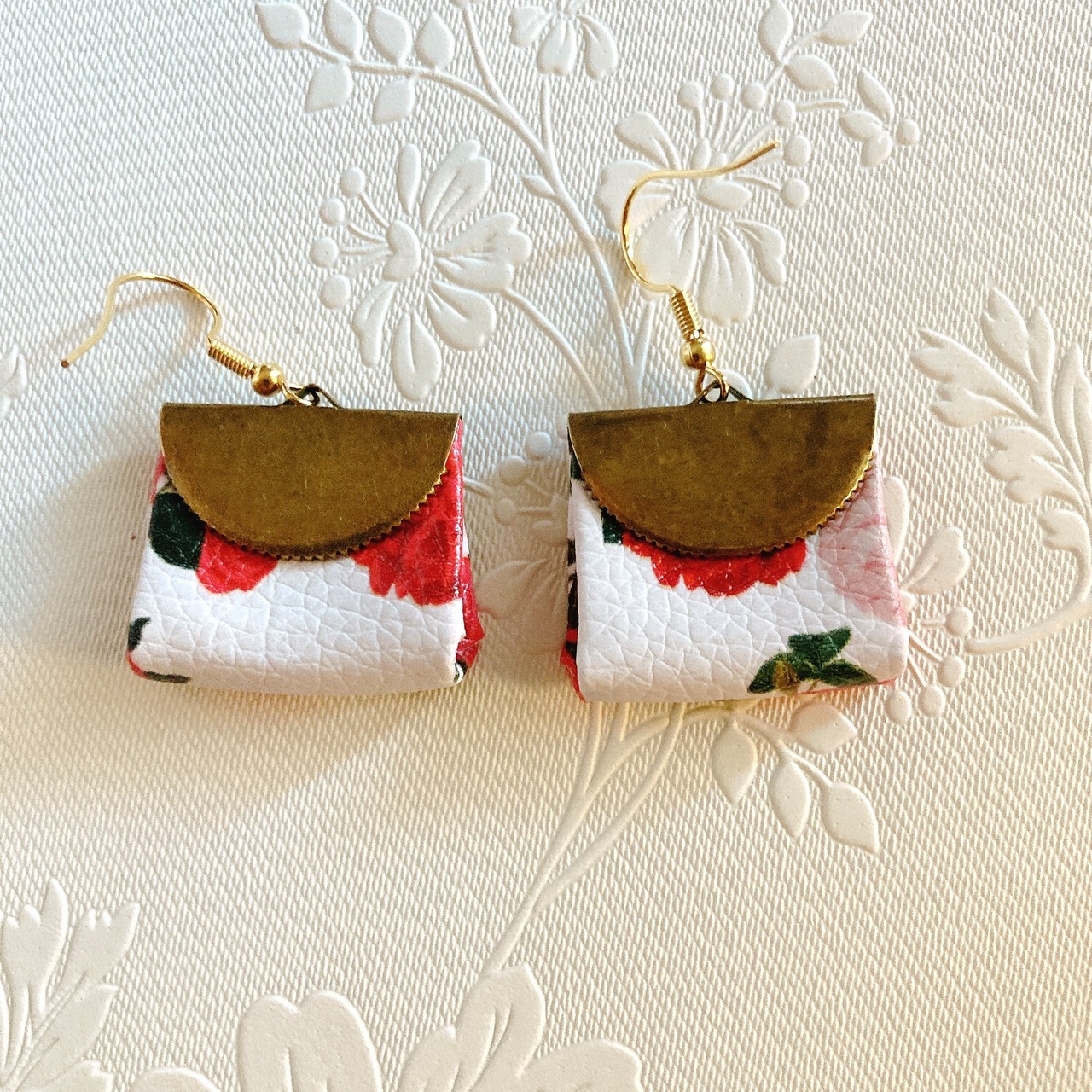 【森のレトロ館生誕3周年記念】エチオピアンオパール装飾の合皮花バッグピアス/イヤリング