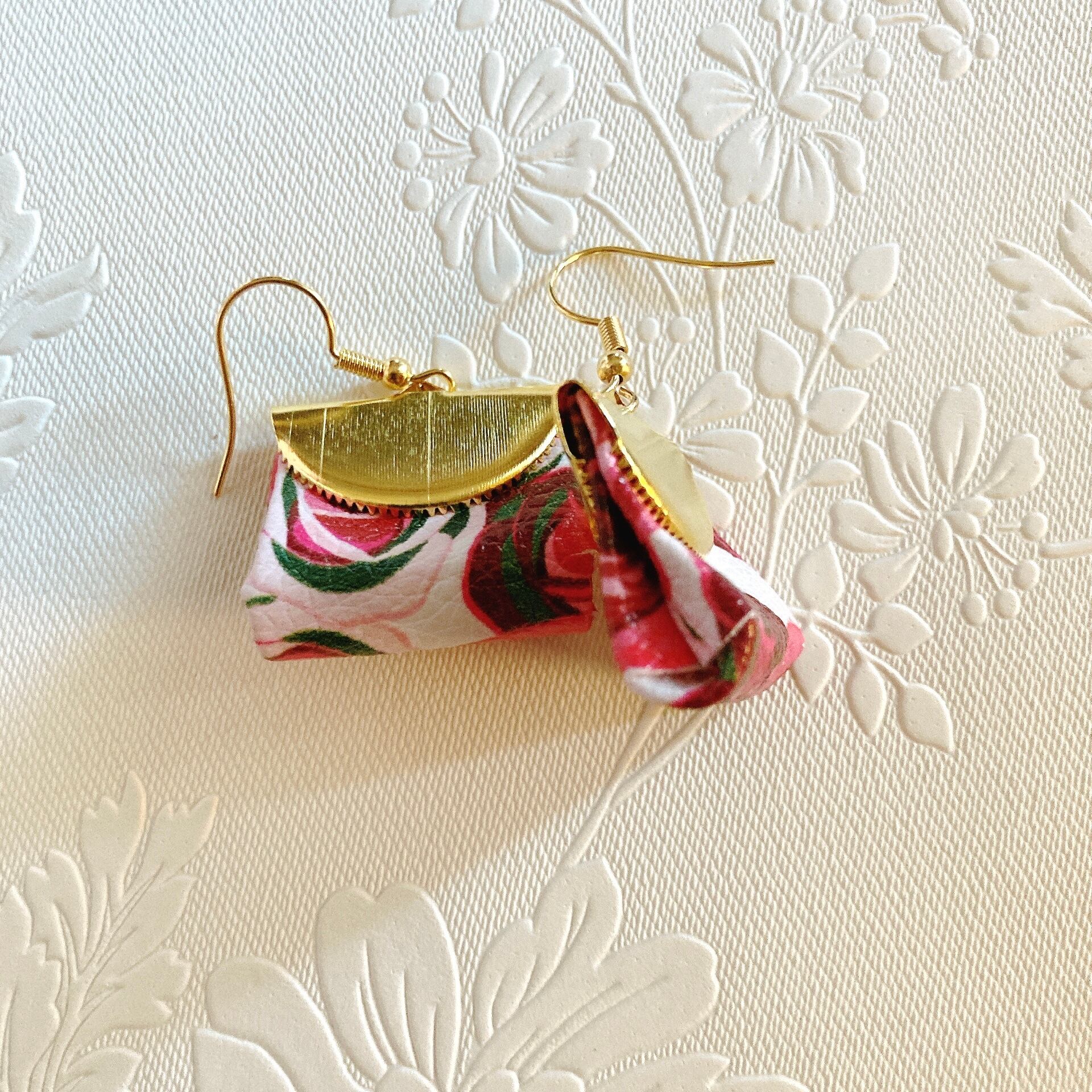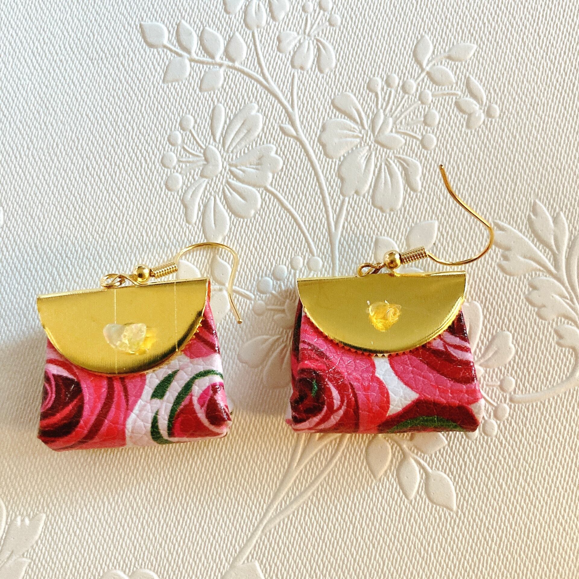 【森のレトロ館生誕3周年記念】エチオピアンオパール装飾の合皮花バッグピアス/イヤリング
