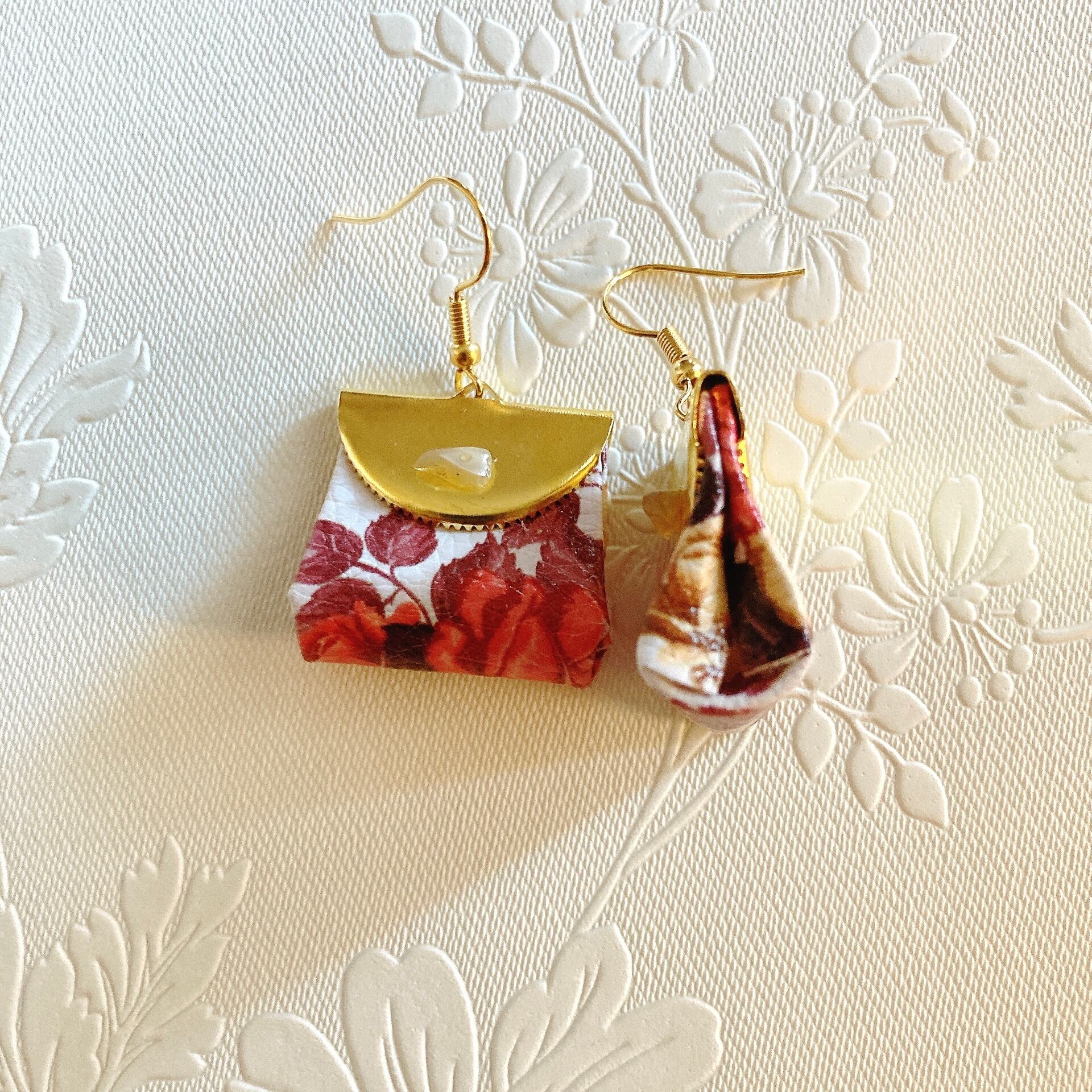 【森のレトロ館生誕3周年記念】エチオピアンオパール装飾の合皮バッグ花ピアス/イヤリング