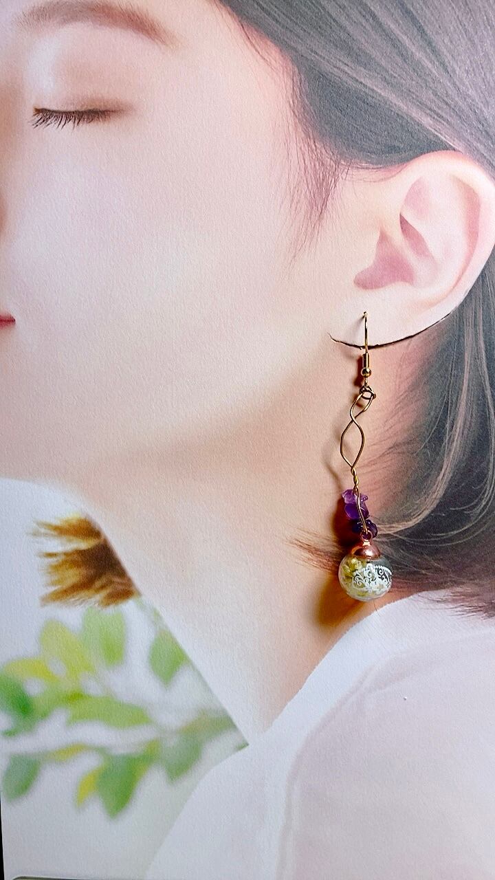 【送料無料】清楚フェミニン!アメジストスターチスアンティークガラスドームピアス