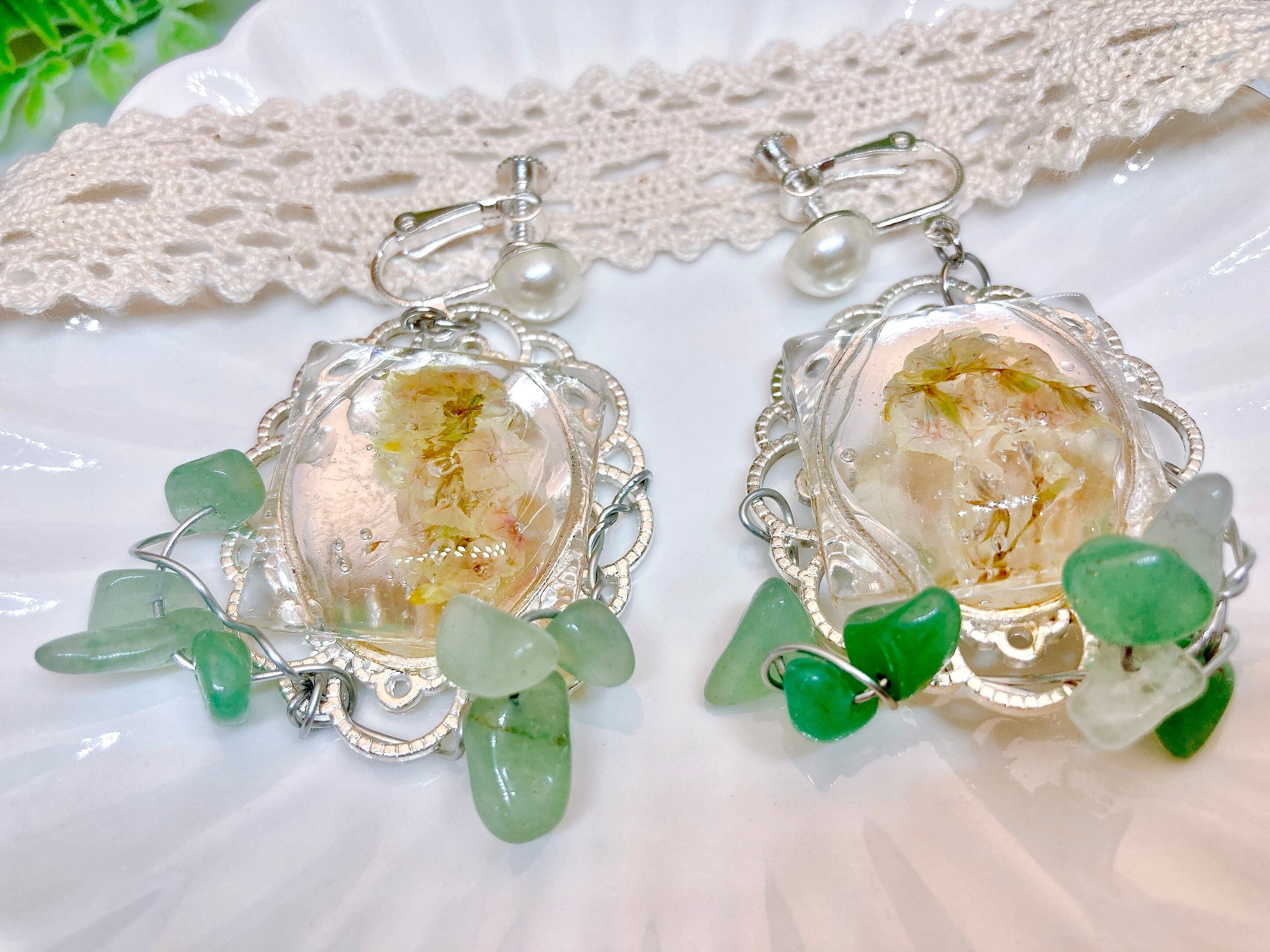 【送料無料】華やぎエレガント!アベチュリンとスターチスの大ぶり花✖️花イヤリング