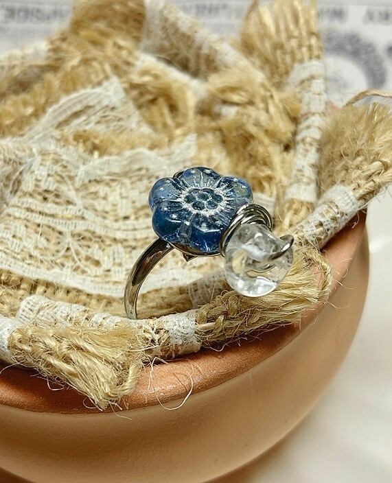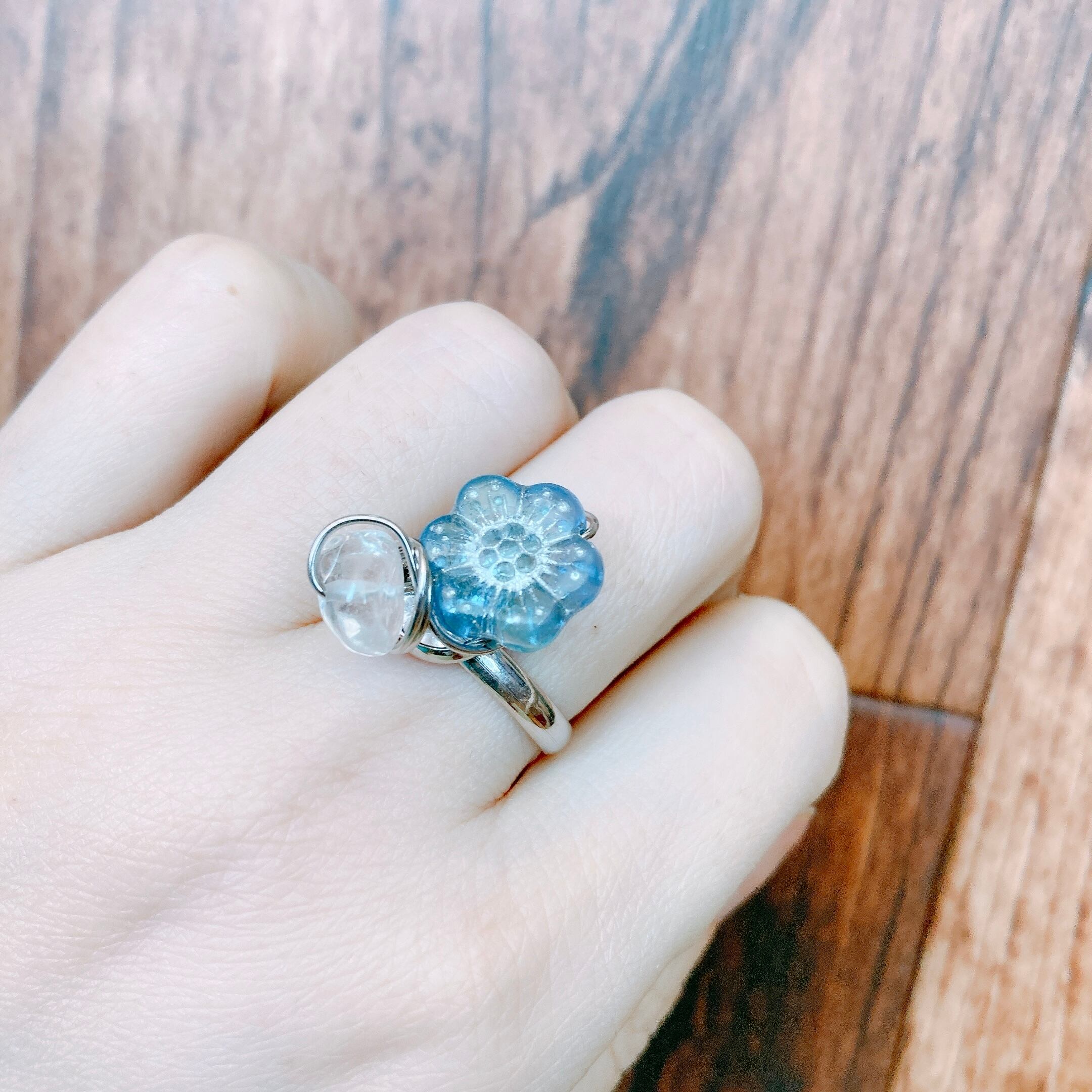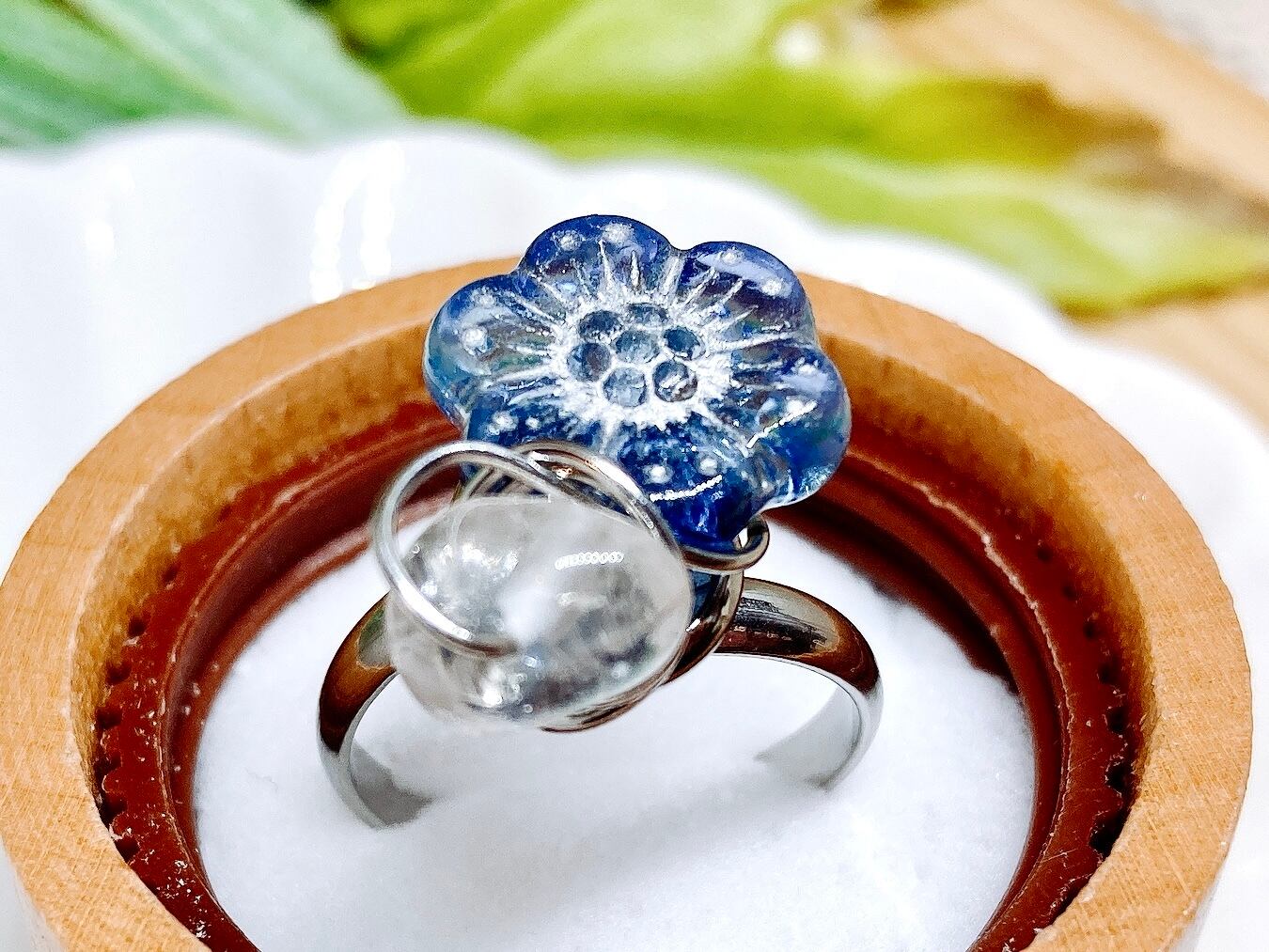 【送料無料】指元フェミニン!サージカルステンレスのサイズ自己調整、2WAYチェコガラスと水晶のリング