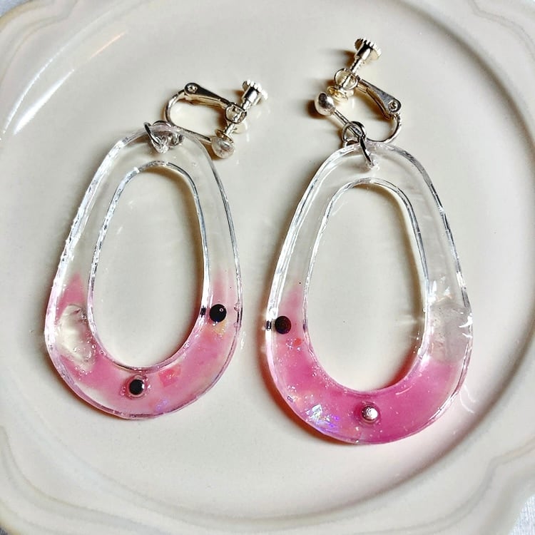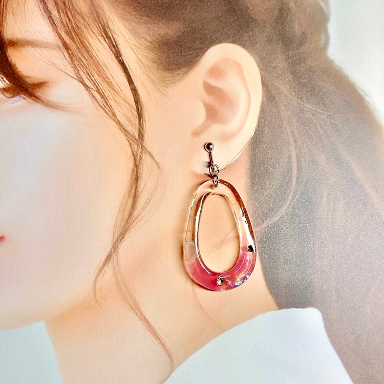 【送料無料】大人可愛い!くすみピンク天然石イヤリング
