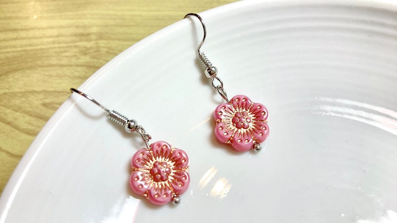 チェコ伝統の高温で焼き上げたチェコガラスの花ピアスです。