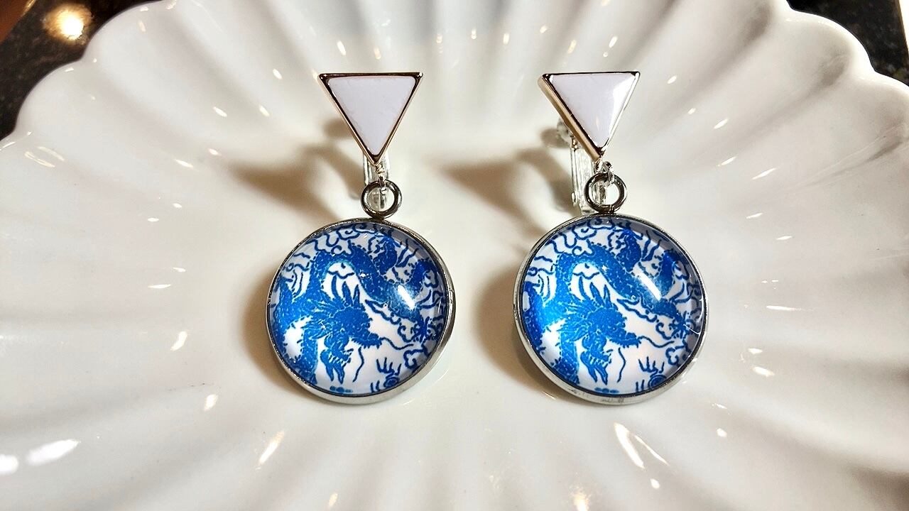 涼し気で上品な碧と白が美しい龍のイヤリングです。