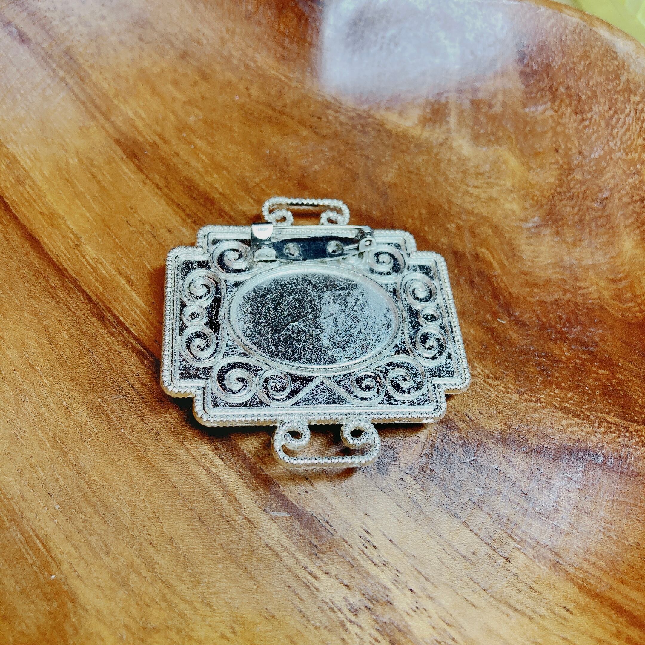 ブローチ金具、ミール皿共に合金です。金属劣化防止に樹脂コーティングを裏表に施しました。