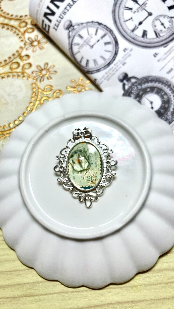 文明開化の遠い異国の地からの箔押し切手に 想いを馳せる。そんなブローチです。