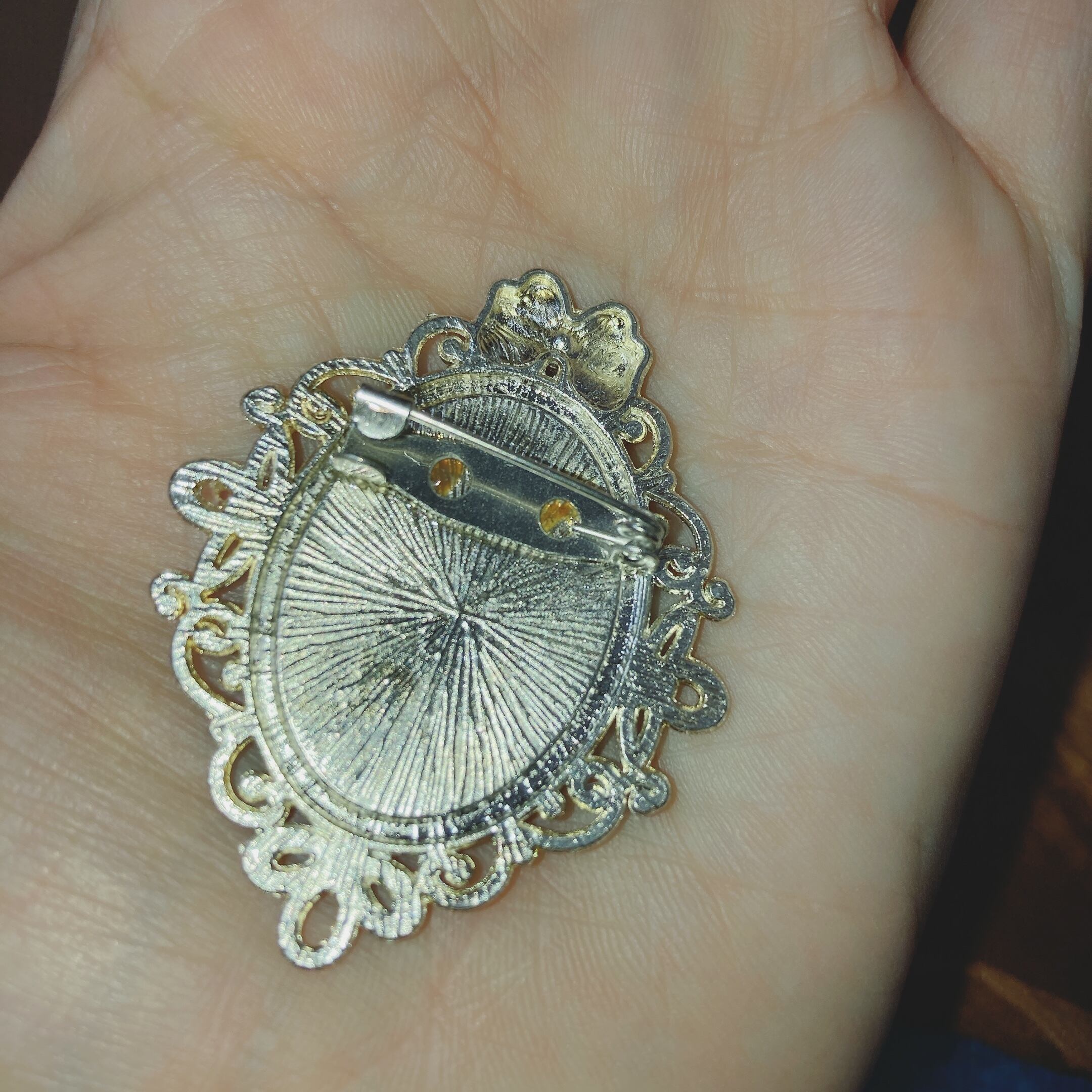 ミール皿、ブローチ留め具共にシルバー色の合金です。