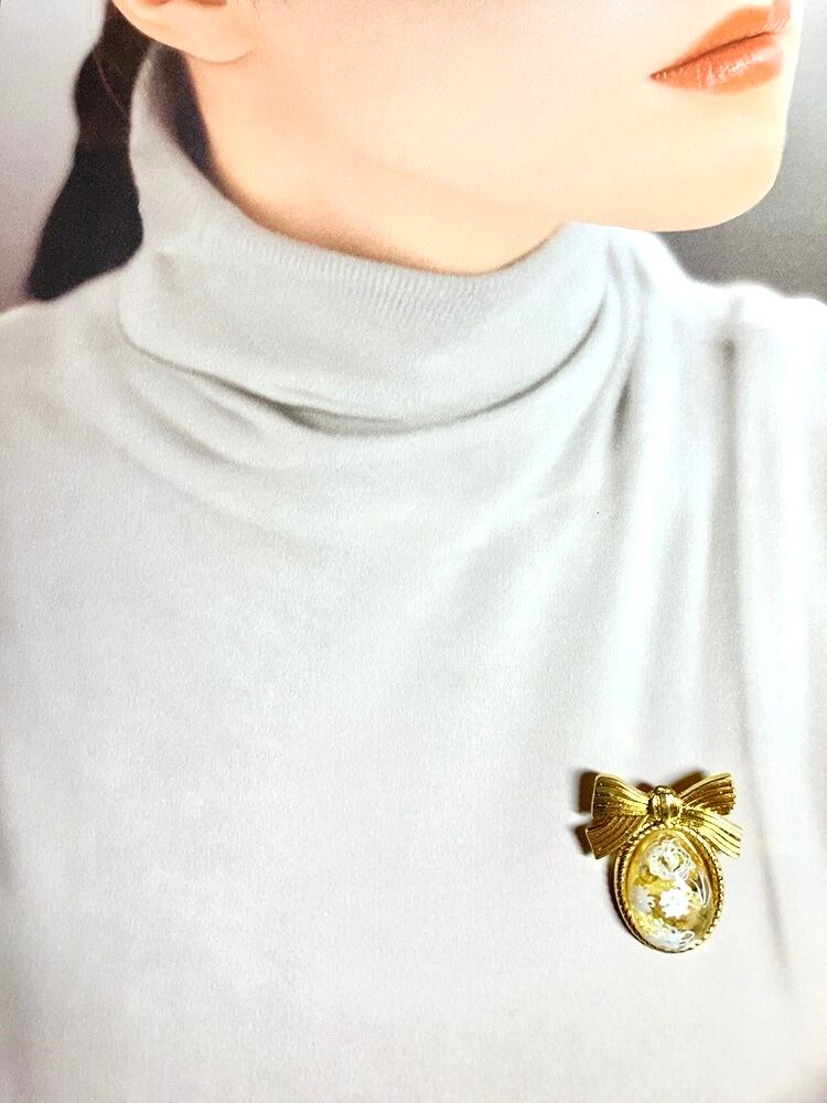 スターチスで作った黄色のドライフラワー入りのレトロミール皿のブローチです。