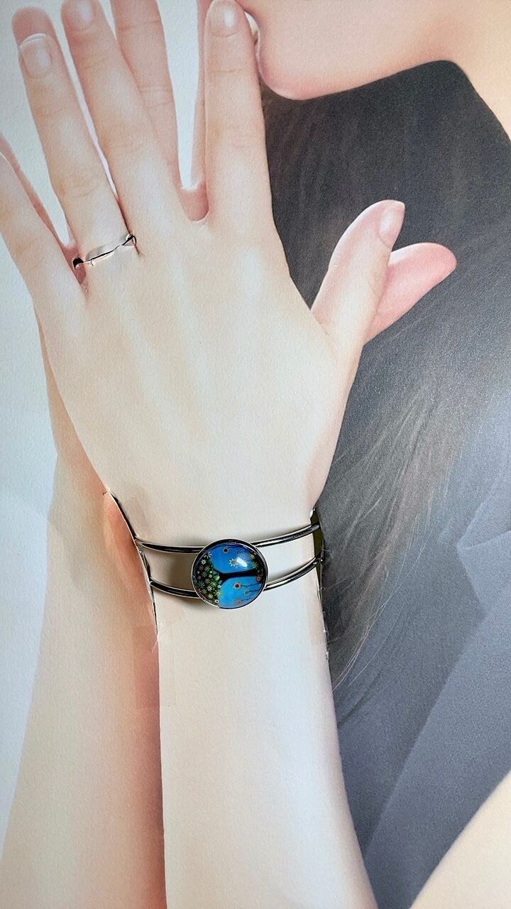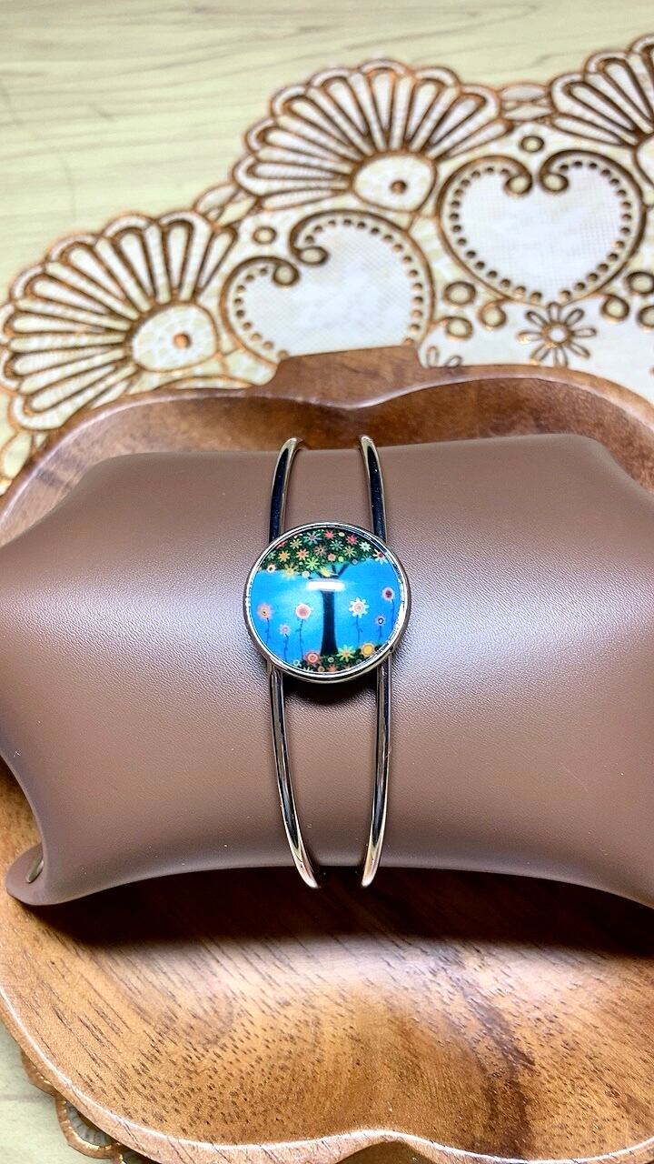 サイズ調整可能なバングルです。ぐっと力を入れて自分で調整可能です。