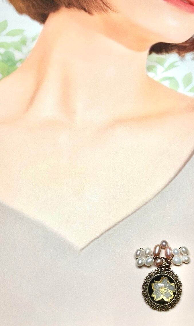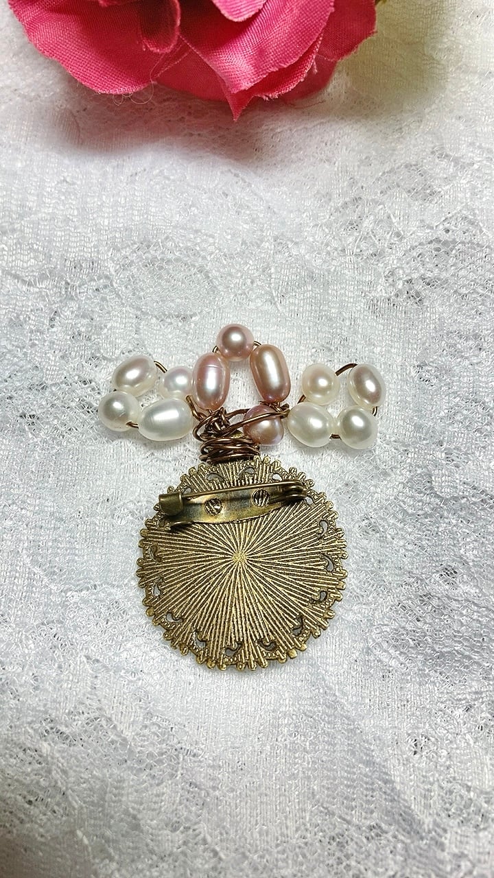 レトロで落ち着いた雰囲気にパールの華やかさが際立つブローチです。とても大人可愛いです。
