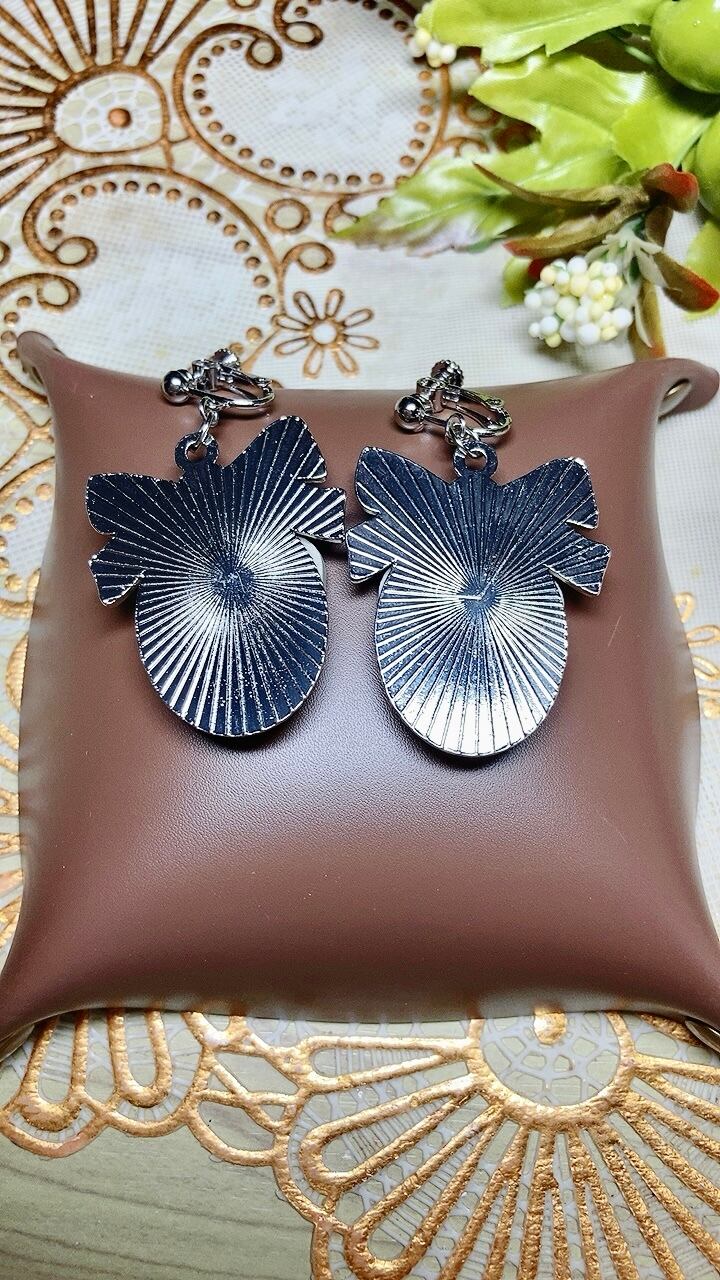 ネジバネ式イヤリングはニッケルフリーの金具を使用。丸カンはサージカルステンレスです。ミール皿は合金です。