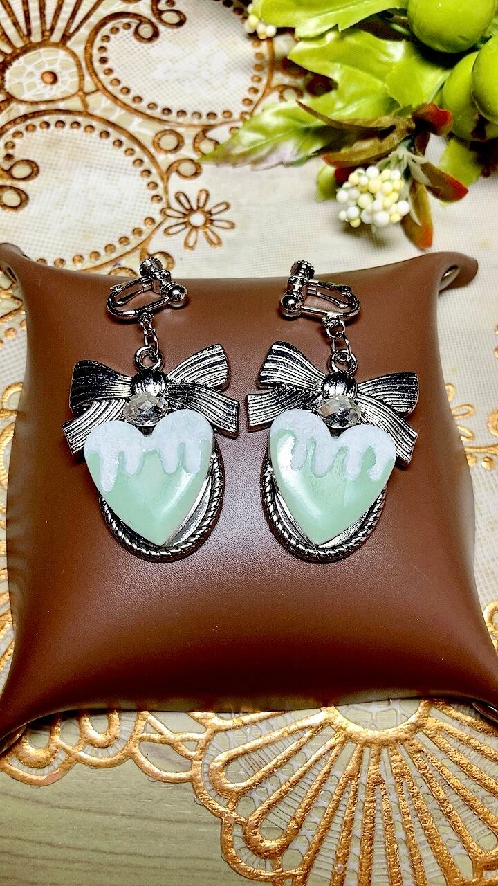 【送料無料】美濃焼シュガーハートイヤリング淡い黄緑