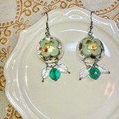 【送料無料】飛び出す美濃焼!4つ葉のクローバー花レースピアス