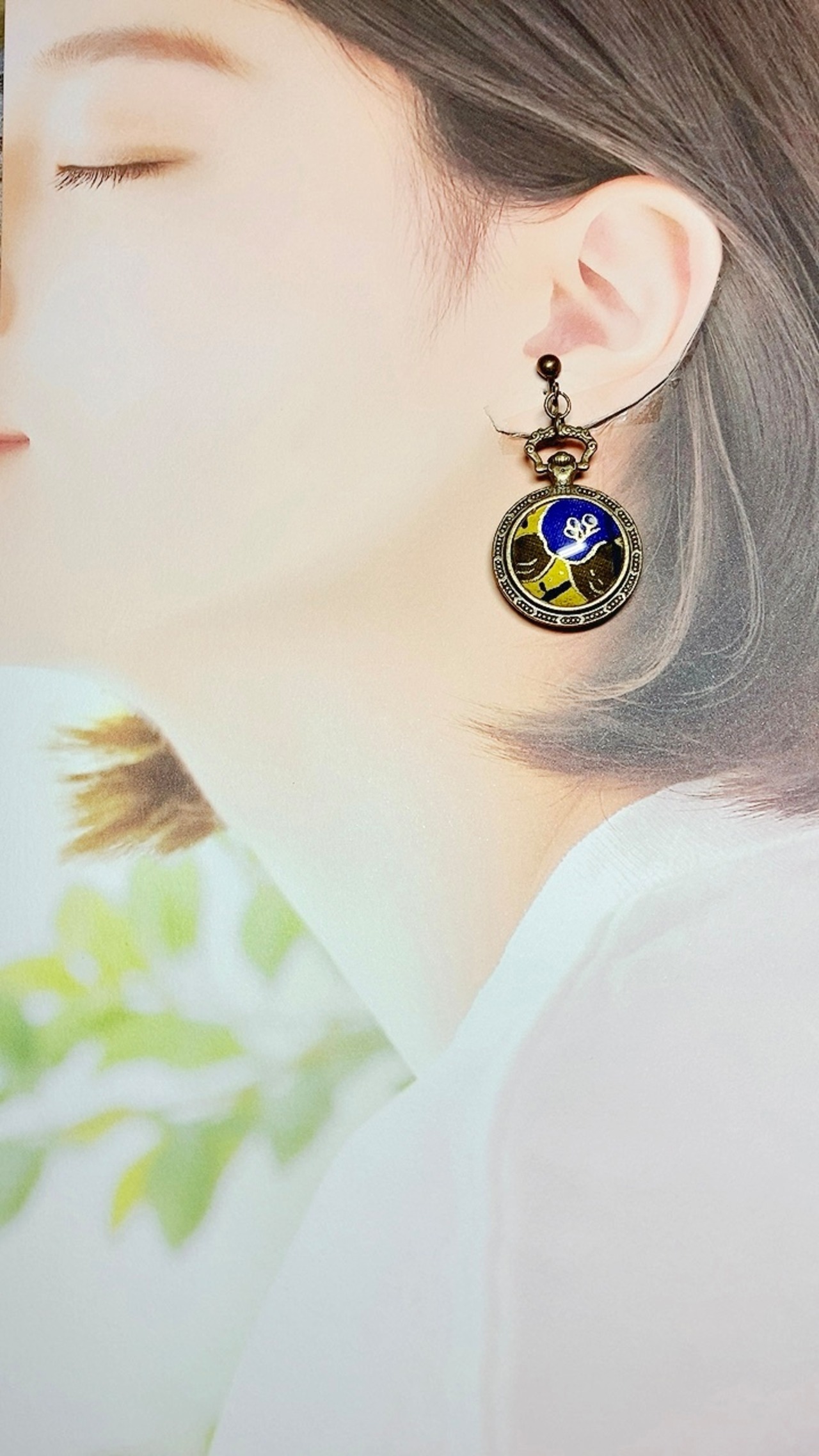 【送料無料】京都友禅染和紙の懐中時計イヤリング