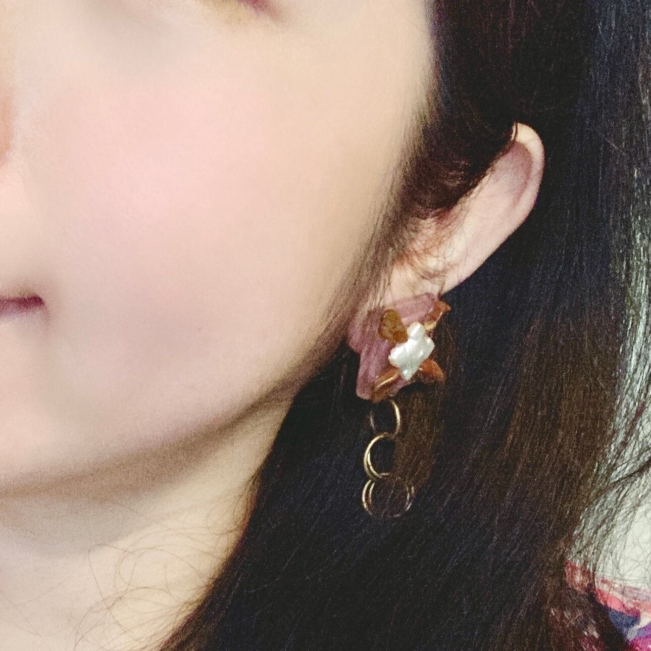 イヤリング金具はゴールド色のアレルギー対応のニッケルフリーネジバネ式金具を使用しております。