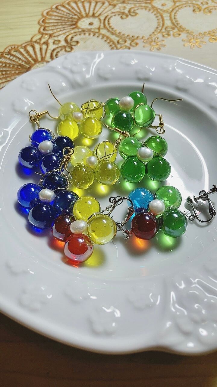 ガラス自体のお色が落ち着いているので、ミックス色でも決して派手にならず可愛らしいです。