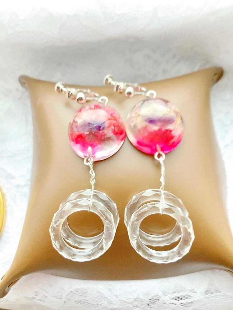 透明感が沢山!暖色可愛いレジンイヤリング♪