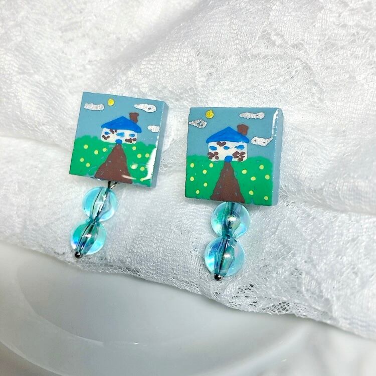 【送料無料】シャボンビーズ揺れる美濃焼タイルのぽかぽか晴れの館イヤリング