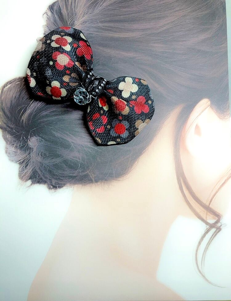 丈夫な西洋お花柄の伝統畳縁をヘアクリップリボンにハンドメイドしました。