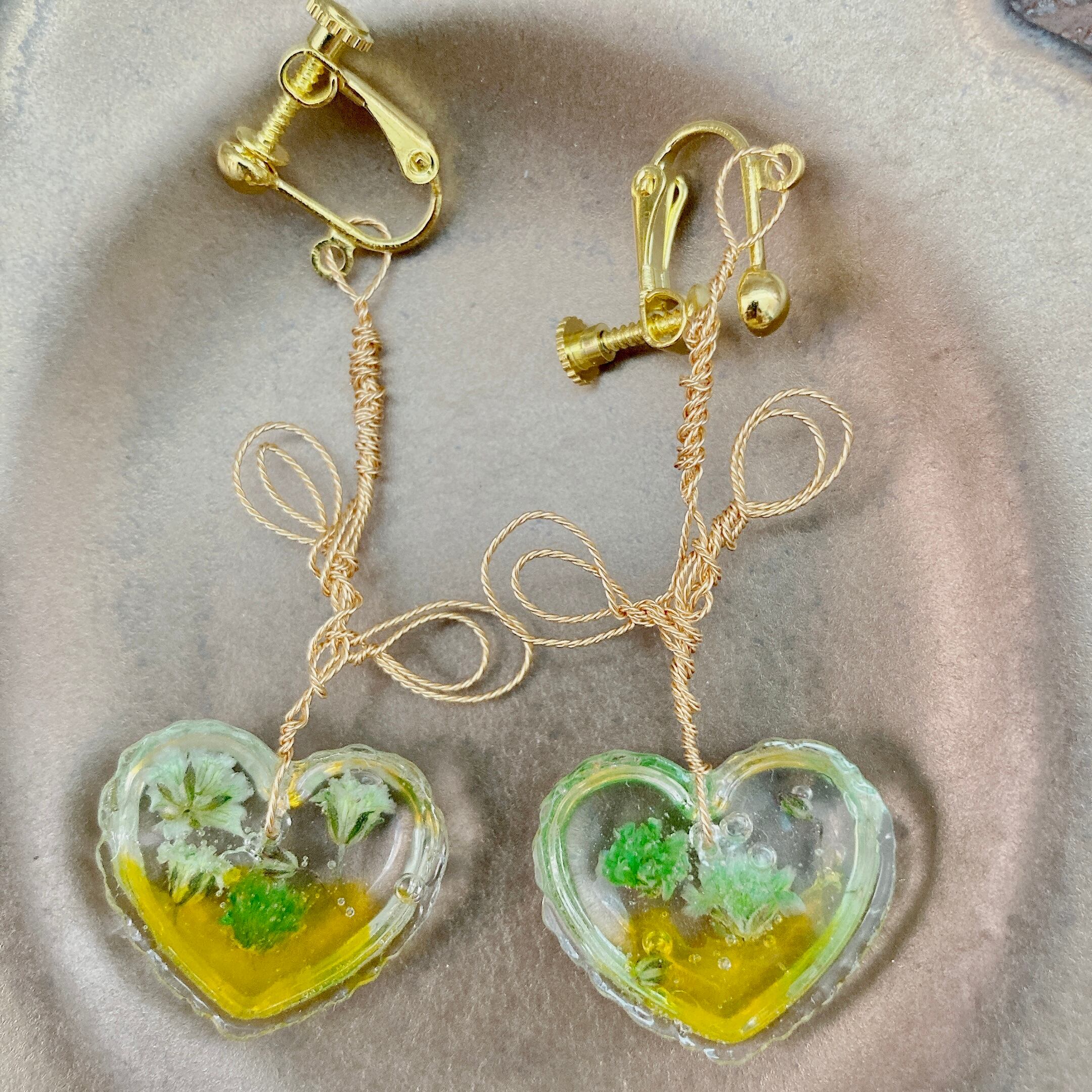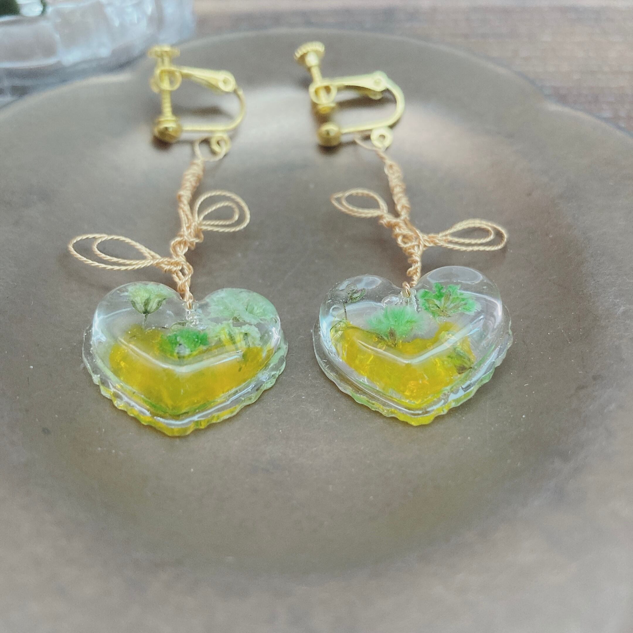 大切な人へ贈るプレゼントにぴったりのかすみ草ハートイヤリング。
