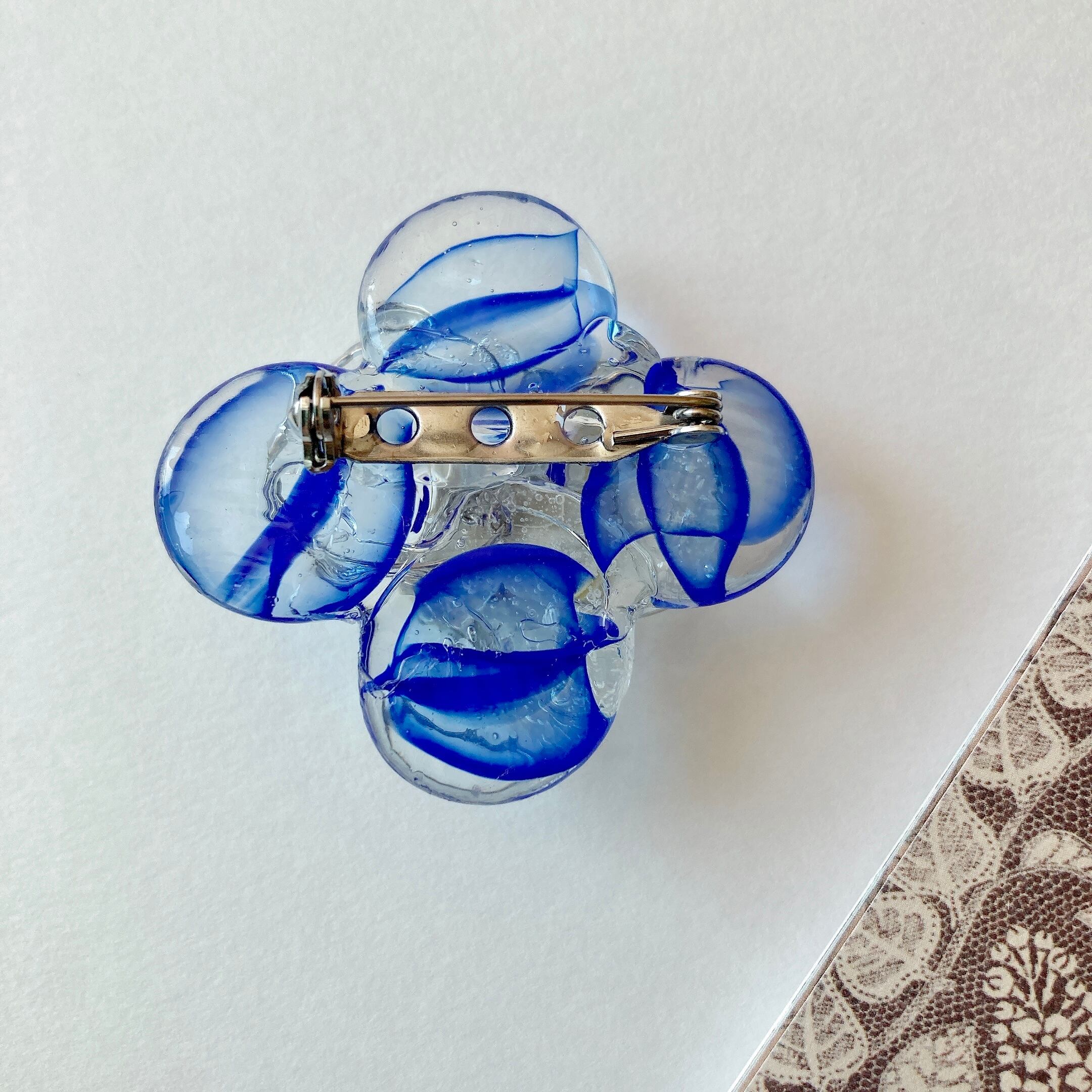 《傾いても可愛く正面向く》レトロ気泡ガラス再現カメリアブローチ