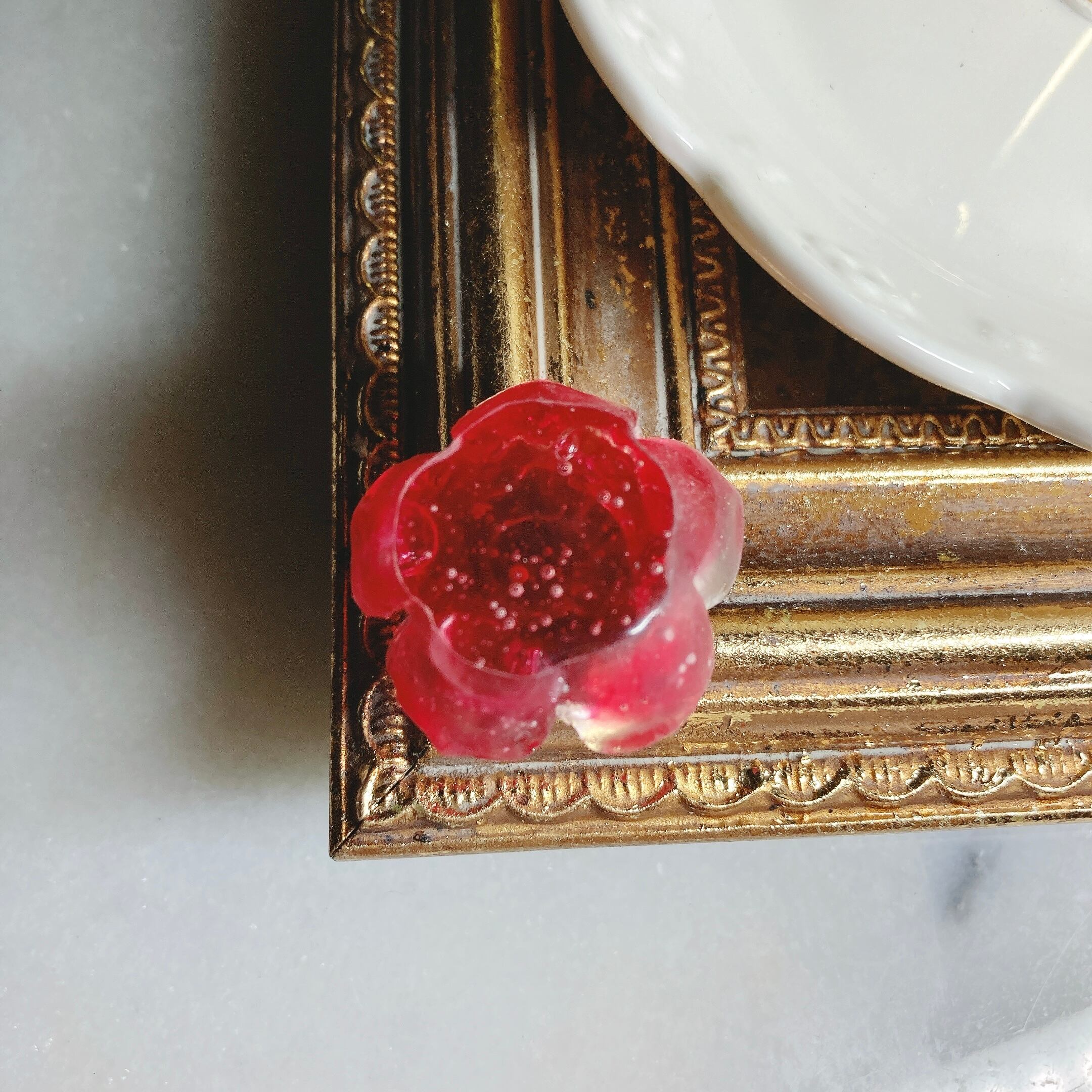 少し残した透明感がとても美しいです。花びらの側面はつや消し加工になっています。それ以外はつや出し加工になっています。