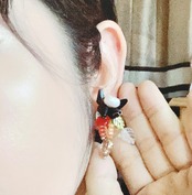 イヤリング裏は冬の金具のヒンヤリが抑えれるようにシャワー台部分に樹脂コーティングを施しました。またその事でイヤリング金具とシャワー台の接着強化にもなっております。
