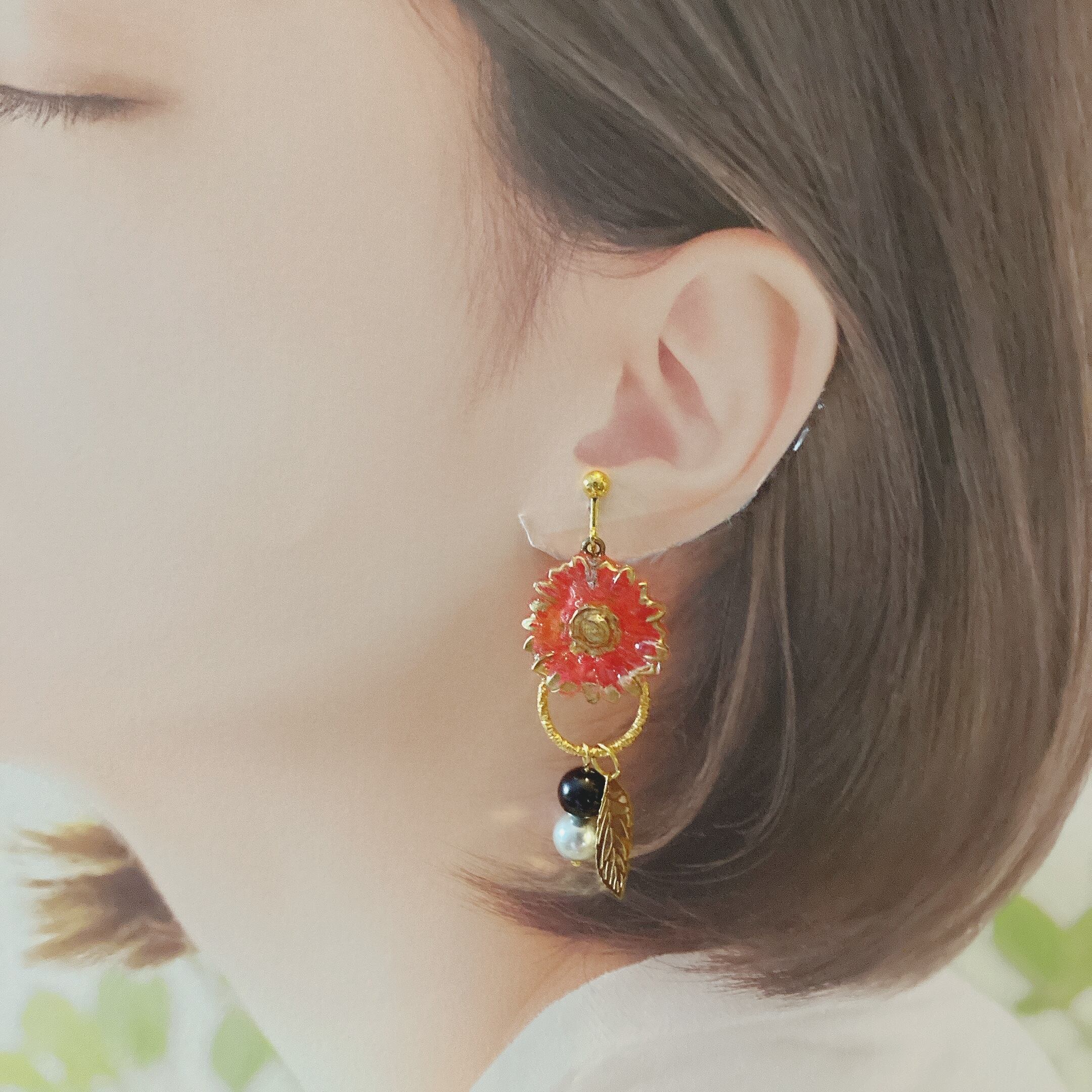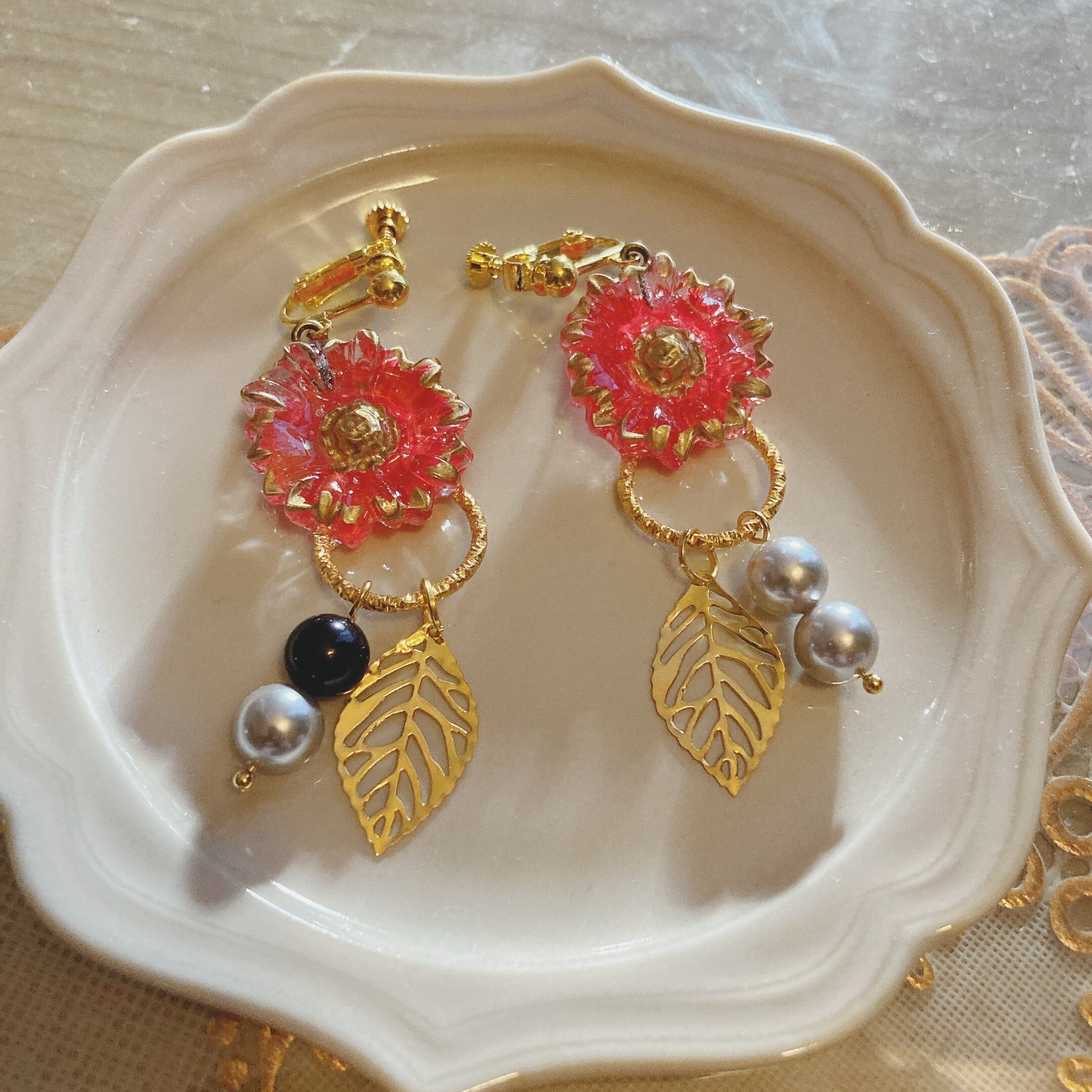 ※レトロ感を出すためにレジン繋ぎの金具【ヒートン】の色を金古美色を使用しております。