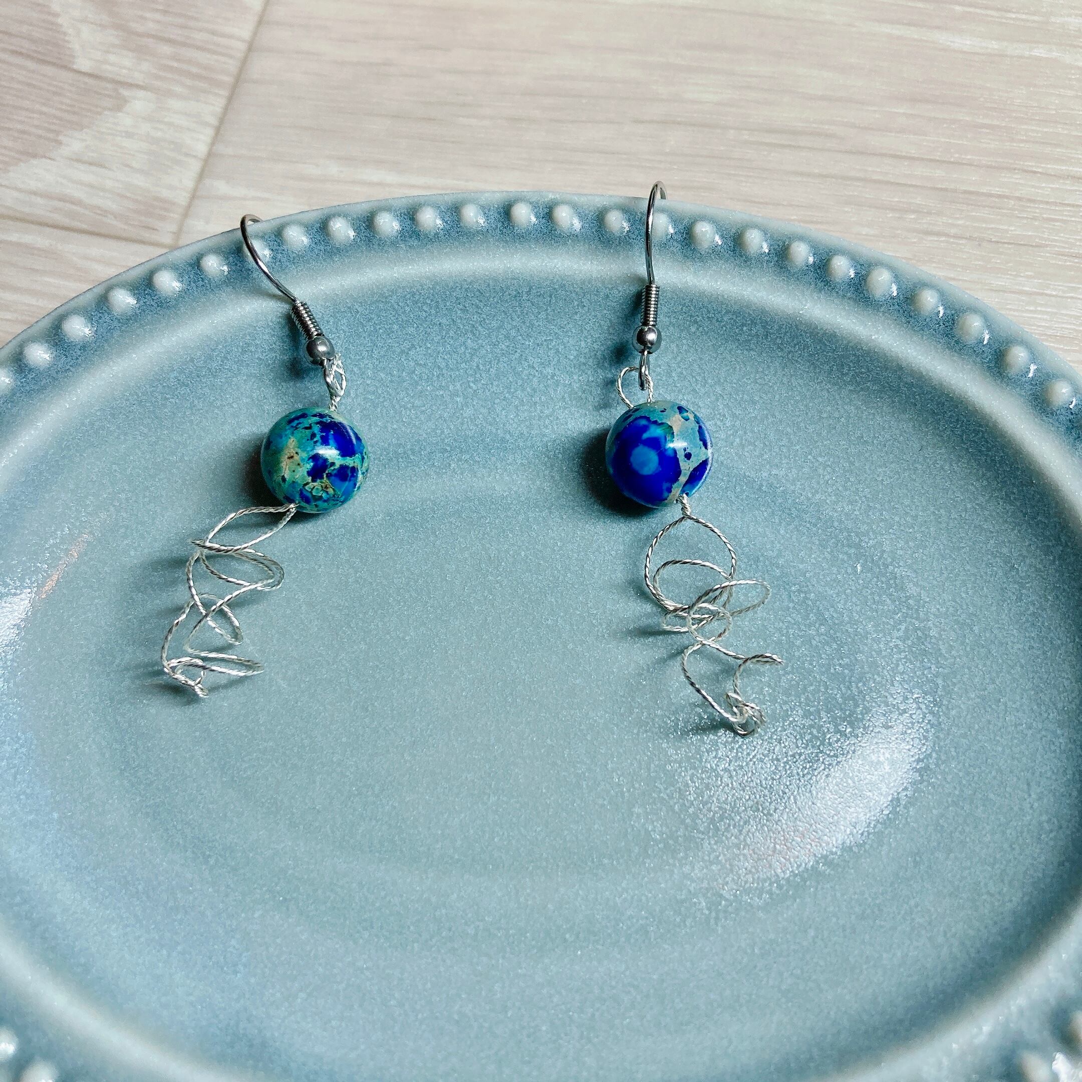 海洋ターコイズの地球波動イヤリングは、まるで地球にそっくりなデザインが魅力です。海洋の堆積層から採れたターコイズの美しいブルーカラーが、地球の海洋をイメージさせます。