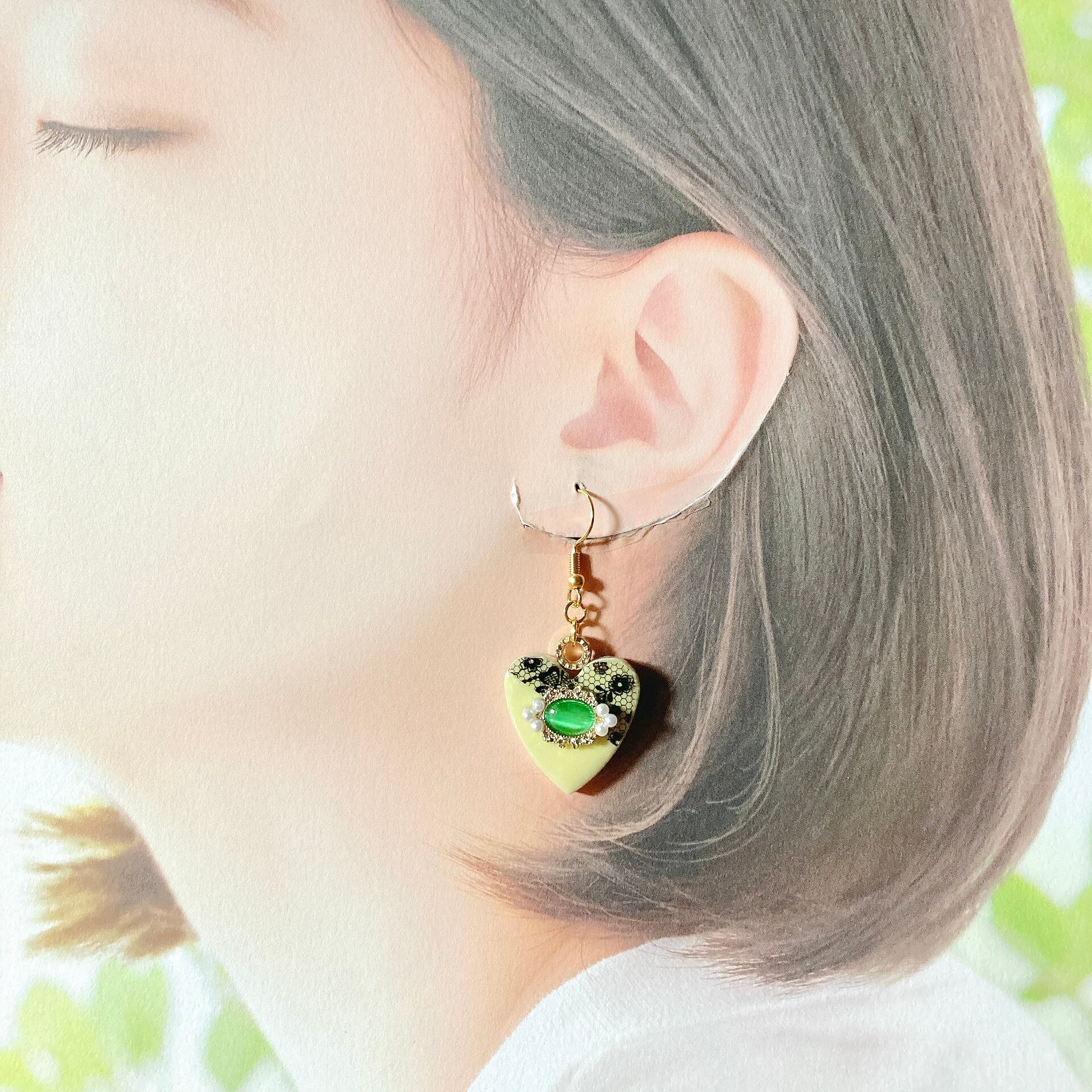 【6色から選択式】アンティーク調ハート型美濃焼タイルのピアス/イヤリング