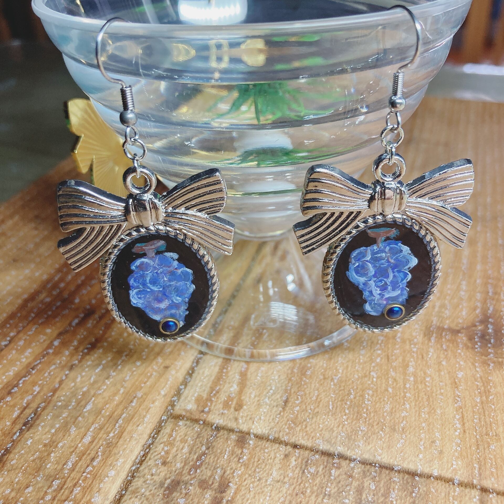 葡萄のピアス/イヤリングは、ミール皿に美しい葡萄のデザインが施された、ユニークで可愛らしいアクセサリーです。