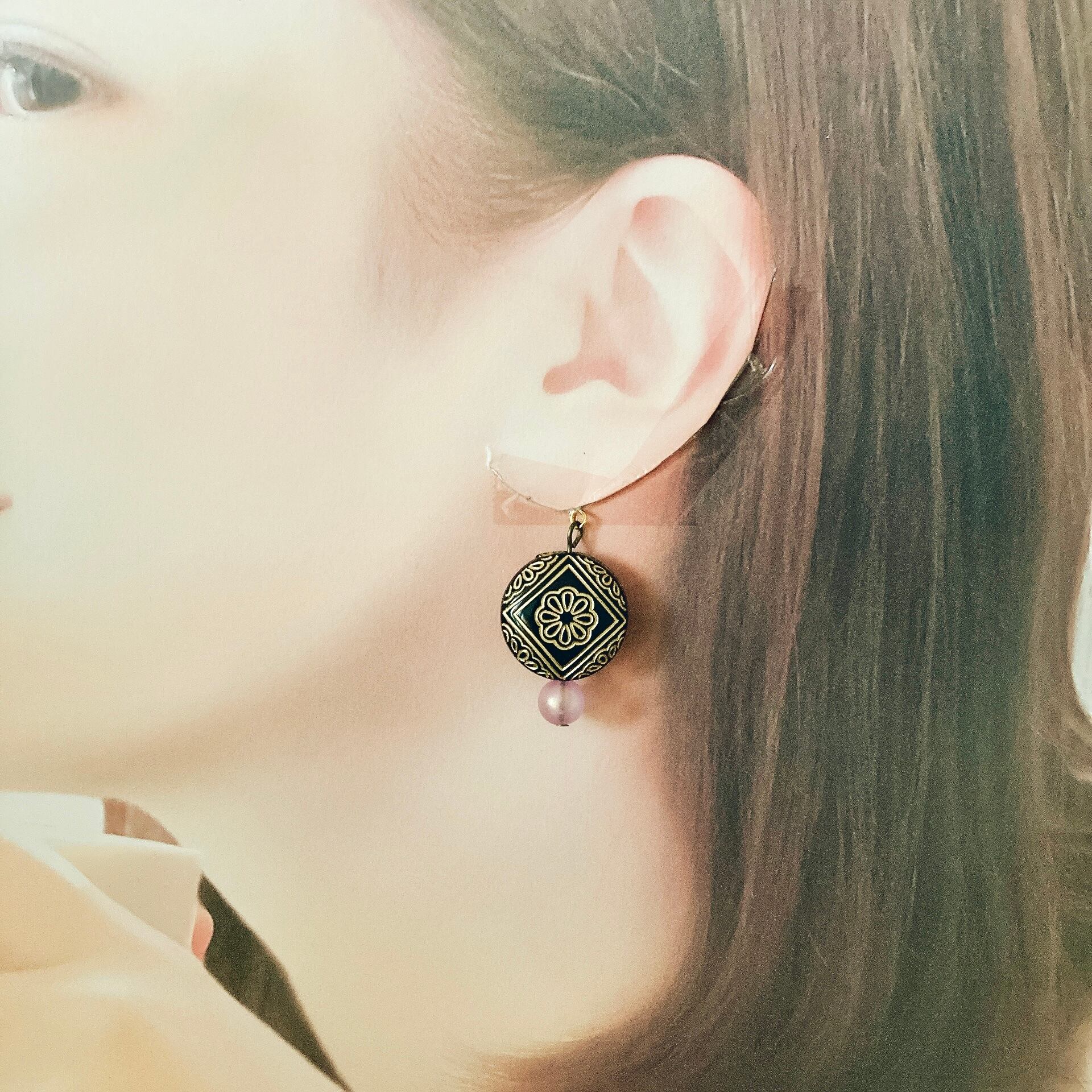 アンティーク調ピアス 黒/白